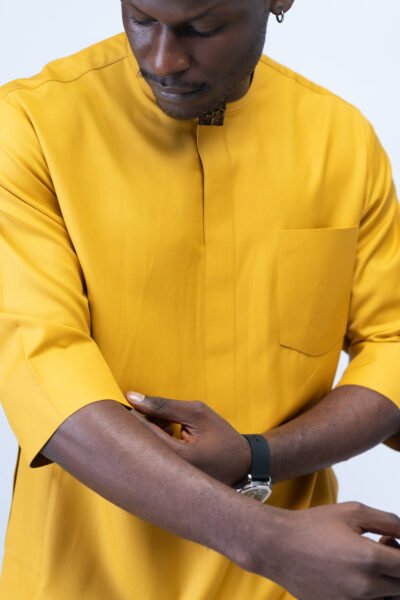 Step into an aura of regal sophistication with our green kaftan, exquisitely adorned with plush velvet details. The luxurious velvet subtly complements the deep green, creating an ensemble that speaks of both tradition and opulence. This kaftan is a celebration of tactile magnificence and visual allure, tailored for the discerning individual who appreciates the art of sartorial elegance. A harmonious blend of texture and color, it’s a testament to refined taste and style.